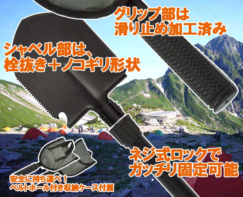 ■サイズ ショベル時全長 45cm 鍬時全長 42cm ※ショベル幅 11cm× ショベル長さ 16cm ■重量 約560グラムこれは便利!1本で使い方は無限大! アウトドアやガーデニング、サバイバルでも有効利用! スコップと鍬付きの2WAY仕様な折りたたみ式ショベル・スコップ! 簡易ノコギリや栓抜きも付いてます! コンパクトなミニシャベル 持ち運びに便利なベルト通し付き収納袋付き アウトドアやキャンプ・レジャーで大活躍間違いなし! 一本鍬が付いてますので様々な用途にご利用頂けます。