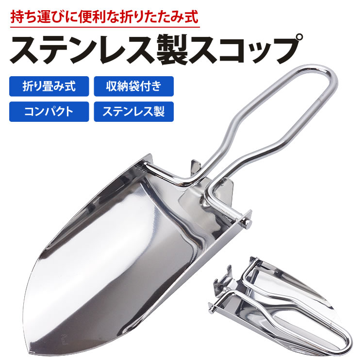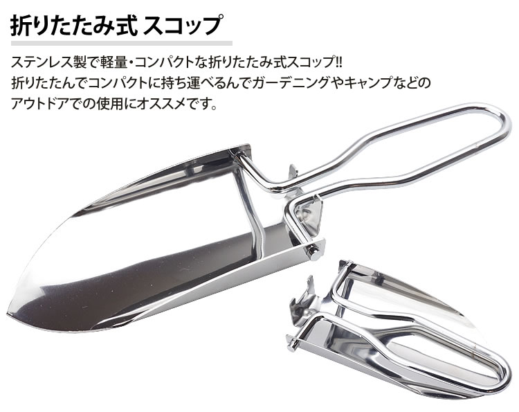 折りたたみ式 スコップ ステンレス製で軽量・コンパクトな折りたたみ式スコップ!! 折りたたんでコンパクトに持ち運べるんでガーデニングやキャンプなどのアウトドアでの使用にオススメです。