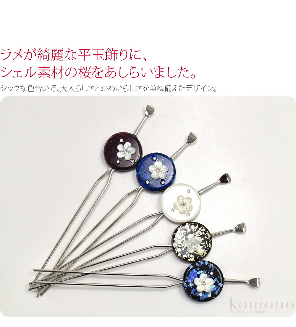 ラメが綺麗な平玉飾りに、シェル素材の桜をあしらいました。