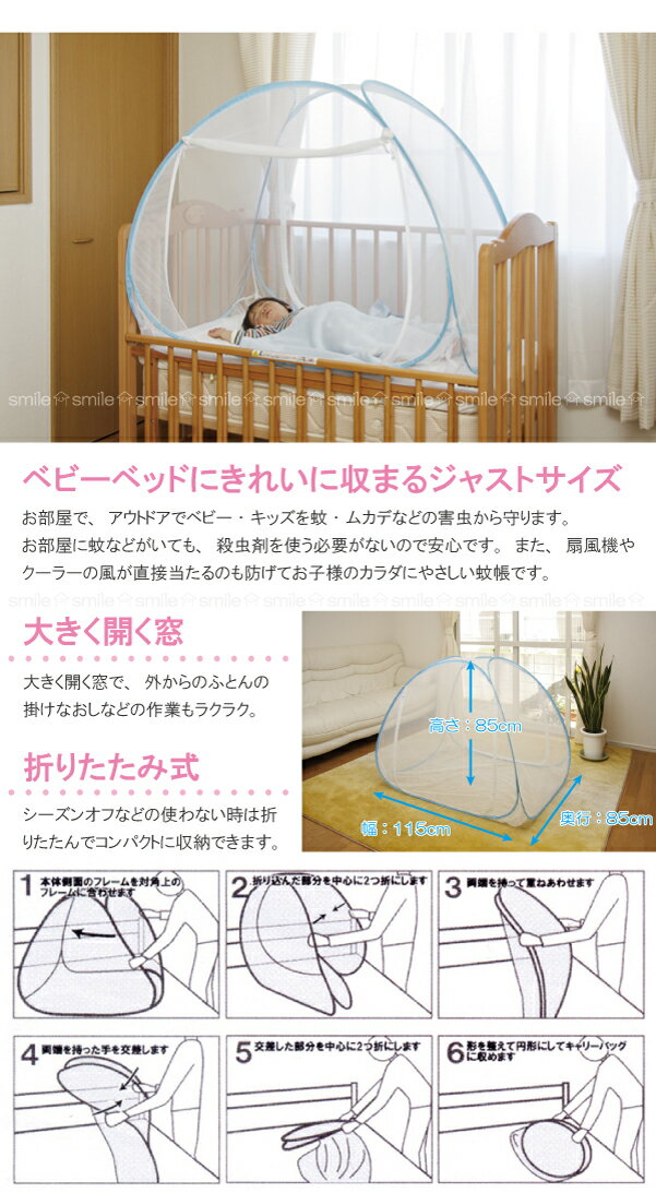 ベビーワンタッチミニ蚊帳 60×90 ベビー用 蚊帳 ミニベビーベッド 設置簡単 かぶせるだけ 底面なしタイプ